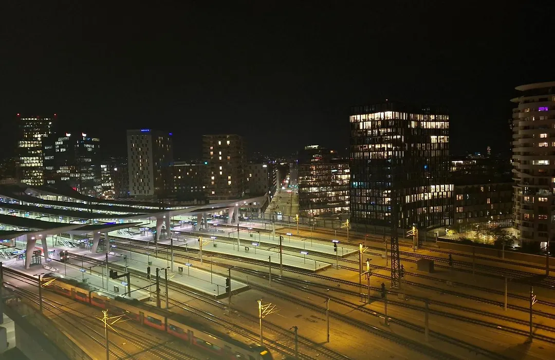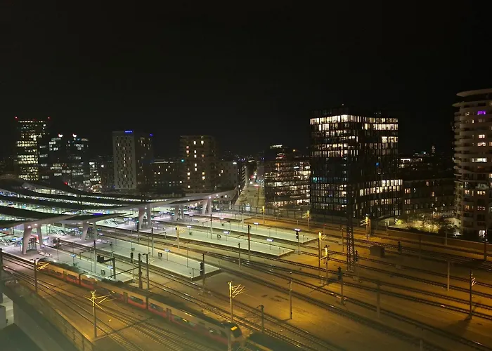 The 60 ft² Direkt Am Hauptbahnhof 2 Terrassen Apartment Vienna lies 2.1 miles from Peterskirche Baroque Church and around a 10-minute stroll from Sudtiroler Place S-Bahn subway station. The apartment is situated 0.4 miles from Wien Hauptbahnhof train station and within easy reach of Alfred-Adler-Strasse bus station.